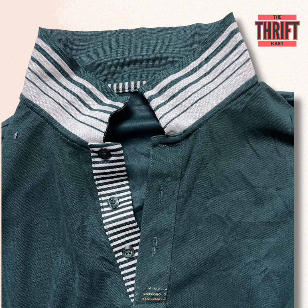 teal polo shirt, striped collar polo, men's casual polo, thrifted menswear, sustainable fashion India, pre-owned polo shirt, smart casual polo, everyday polo shirt